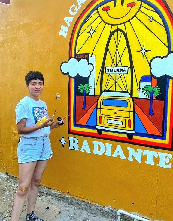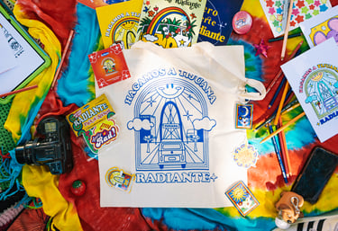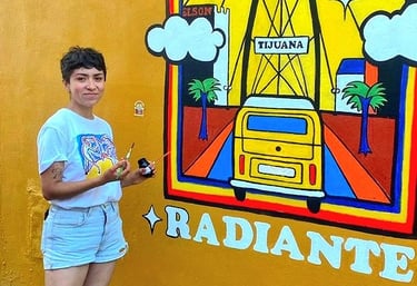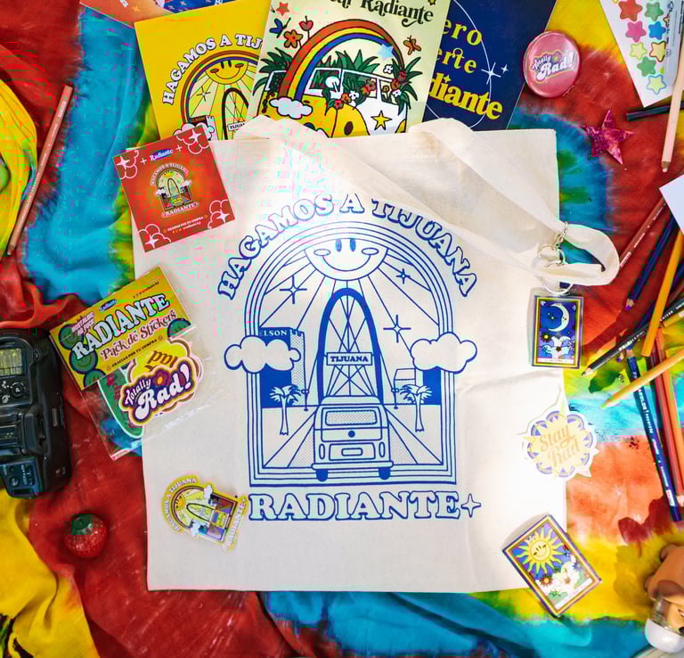 Desde 2018 desarrollo Radiante, un proyecto de ilustración, diseño y merch con el que promuevo ambientes positivos en mi ciudad bajo la frase: “Hagamos a Tijuana radiante.”