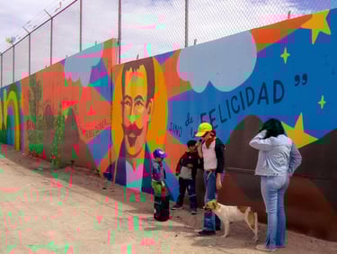 Tuve el honor de participar en este gran proyecto junto a Colectivo Tomate y México Bien Hecho, llevando arte y color a las comunidades de Campestre Virreyes y José Martí en Ciudad Juárez. A lo largo de 2.3 kilómetros, junto con 25 artistas, trabajamos en la creación de 53 murales, rescatando las historias y vivencias de sus habitantes.
