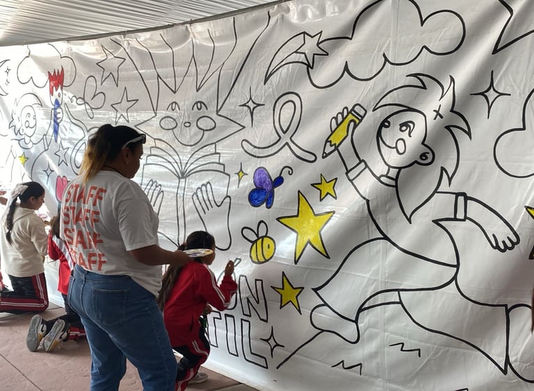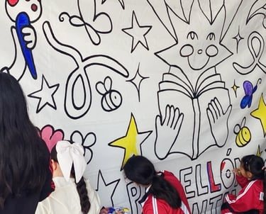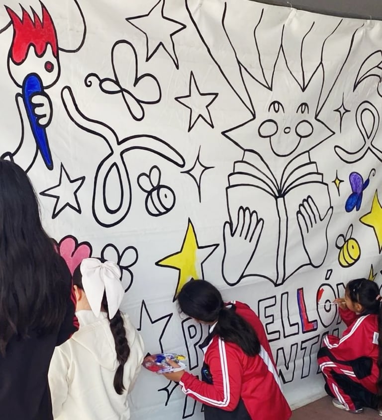 Mural participativo en el Pabellón Infantil de la Feria del Libro de Tijuana, realizado junto a la Secretaría de Cultura de Tijuana.