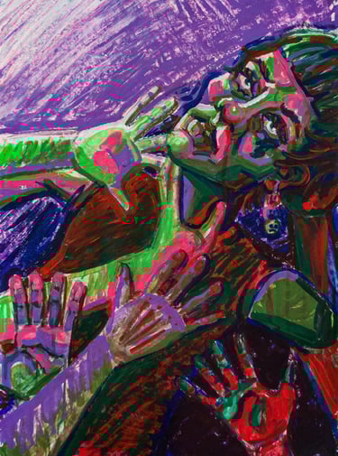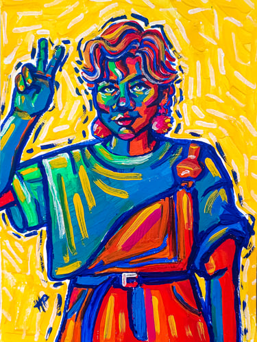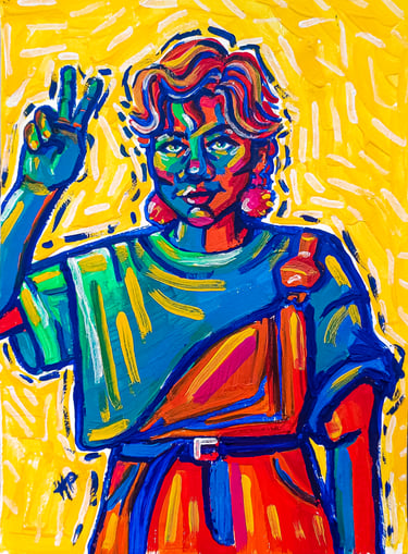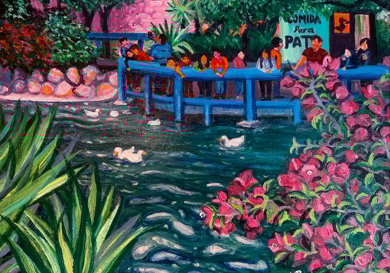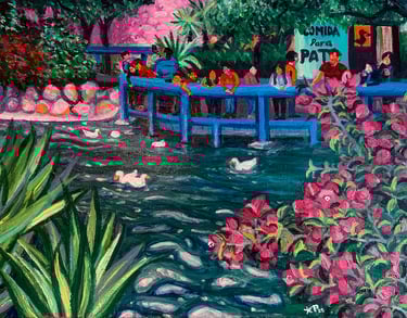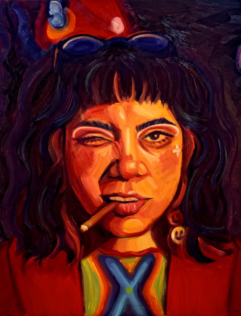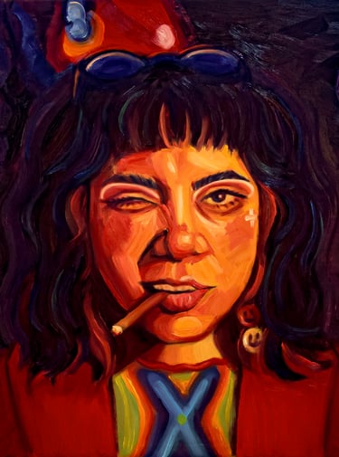 Trabajo con composiciones expresivas, colores vibrantes y trazos intuitivos para construir escenas que exploran emociones, memoria y estados interiores.