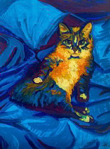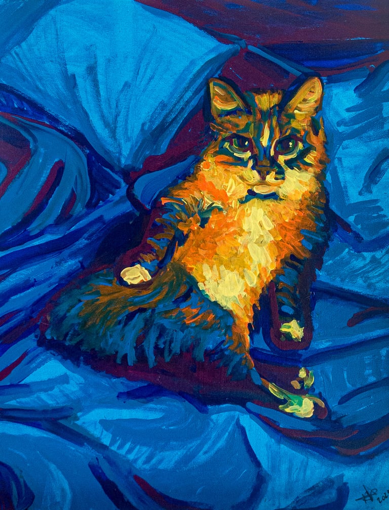Retrato de Blue sobre la cama