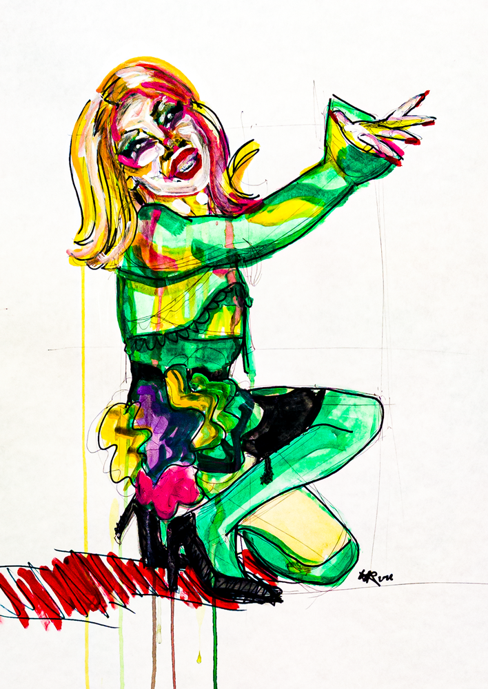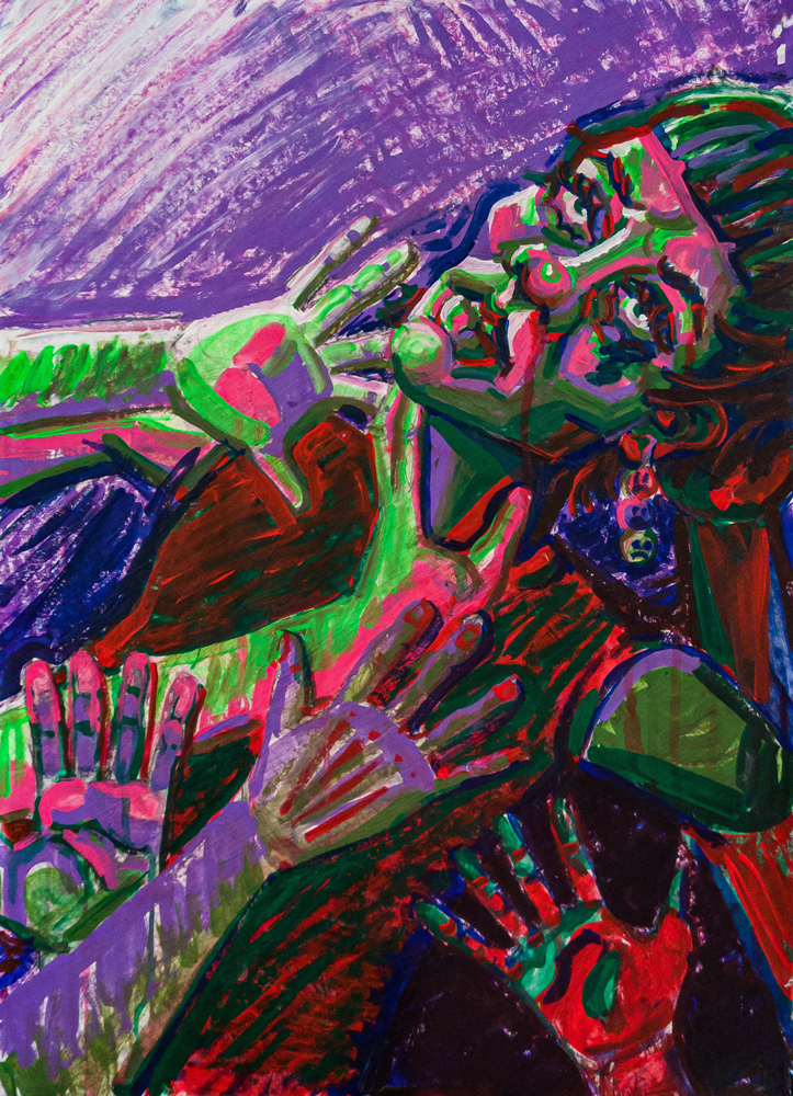 Técnica: Mixta; acrílico, lápiz y marcadores sobre papel.